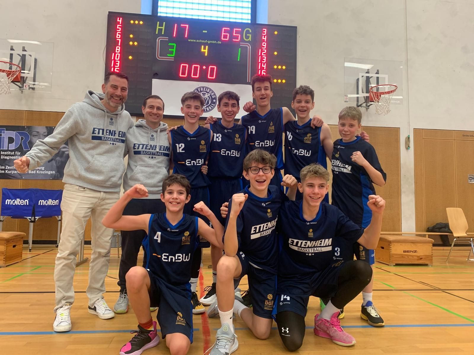 Die U12 der BG Ettenheim konnte am heutigen Sonntag, dem 26. Januar 2025, einen weiteren beeindruckenden Heimsieg feiern. Dank ihrer größeren Erfahrung und einer geschlossenen Mannschaftsleistung gelang es dem Team, das Spiel von Anfang bis Ende souverän zu kontrollieren. Mit einem deutlichen Endstand von 87:29 setzte sich die BG Ettenheim klar gegen die U12 der Eagles Emmendingen durch. Ein besonderer Dank gilt unseren Gästen aus Emmendingen, die mit viel Einsatz und Spielfreude zu einem großartigen Freundschaftsspiel beigetragen haben. Solche Begegnungen sind eine wertvolle Gelegenheit, den Basketballsport zu fördern und allen Beteiligten schöne Erlebnisse auf dem Spielfeld zu ermöglichen. Wir freuen uns schon auf ein Wiedersehen!
